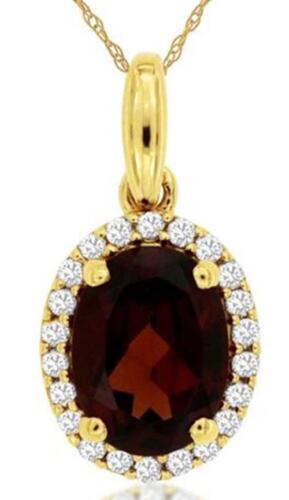 14KT YELLOW GOLD FLOATING PENDANT. 3D CLASSIC FLOWER DESIGN. ROUND DIAMONDS ARE F/G COLOR, VSSI CLARITY .14 CARATS. AAA EXTRA FACETED OVAL GARNET IS 1.40 CARATS. COMES ON A 14KT GOLD DIAMOND CUT 16" INCH CHAIN. WRITTEN APPRAISAL AVAILABLE. COMES IN A PRESENTABLE GIFT BOX.