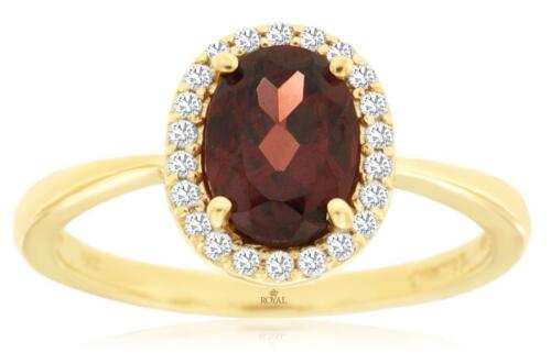 1.54CT DIAMOND & AAA GARNET 14KT YELLOW GOLD OVAL & ROUND HALO CLASSIC LOVE RING