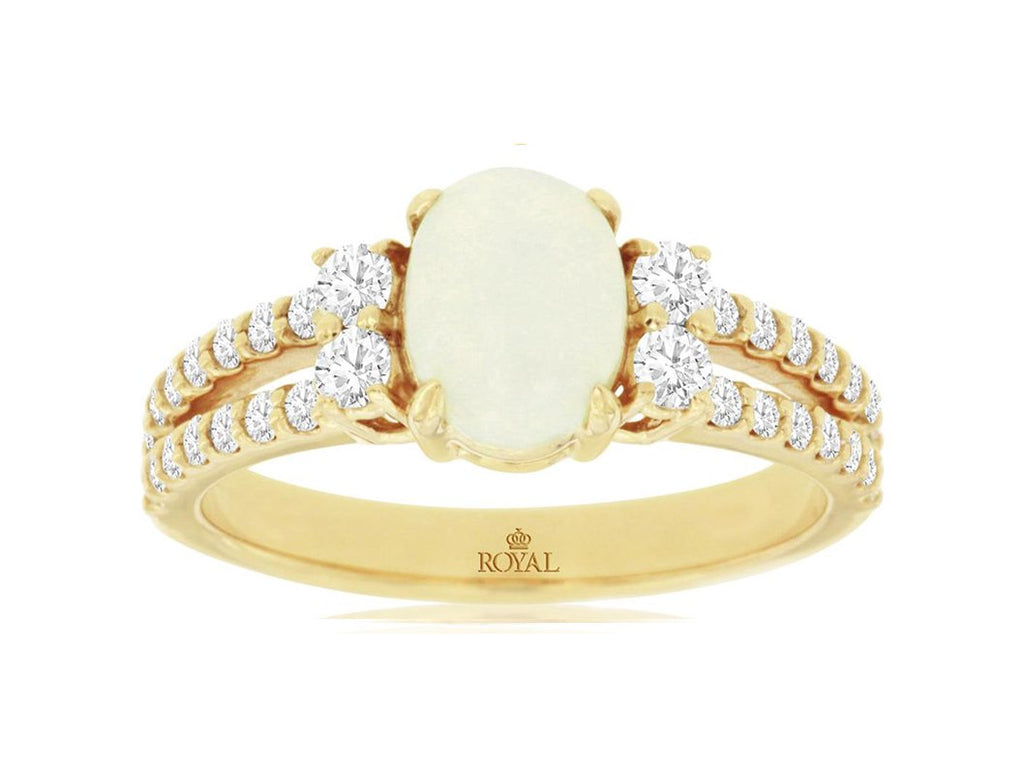 1.55CT DIAMOND & AAA OPAL 14KT YELLOW GOLD OVAL & ROUND CLASSIC FRIENDSHIP RING