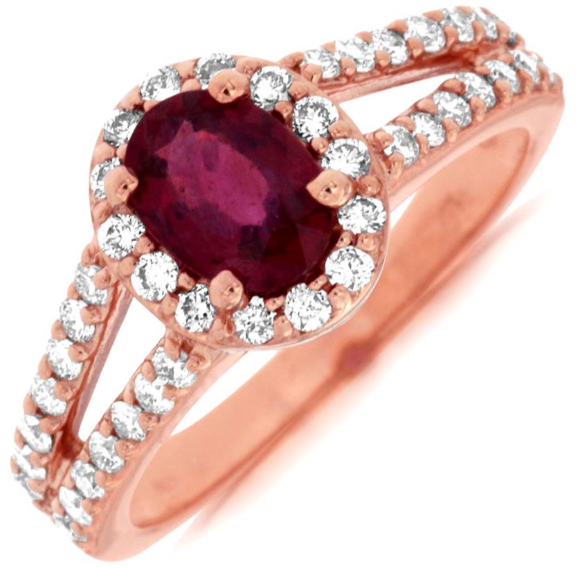 1.55CT DIAMOND & AAA RUBY 14KT ROSE GOLD 3D OVAL & ROUND HALO ENGAGEMENT RING