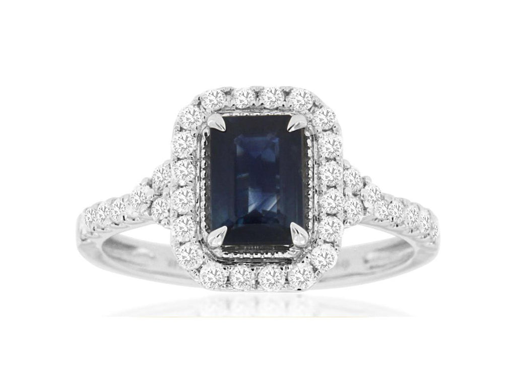 1.55CT DIAMOND & AAA SAPPHIRE 14K WHITE GOLD EMERALD CUT & ROUND ENGAGEMENT RING