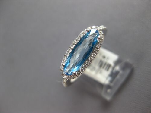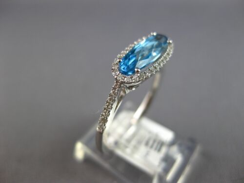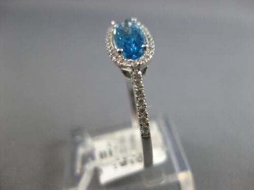14KT WHITE GOLD FUN RING. 3D FILIGREE HALO DESIGN. ROUND DIAMONDS ARE F/G COLOR, VSSI CLARITY .21 CARATS. AAA EXTRA FACETED OVAL BLUE TOPAZ IS 1.35 CARATS. MEASURES 6.5mm WIDE. RING SIZE 7. CAN BE SIZED BY OUR MASTER JEWELER UPON REQUEST. WRITTEN APPRAISAL AVAILABLE. COMES IN A PRESENTABLE GIFT BOX.