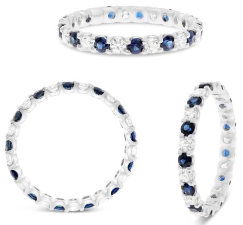 1.57CT DIAMOND & AAA SAPPHIRE 14KT WHITE GOLD 3D ROUND ETERNITY ANNIVERSARY RING