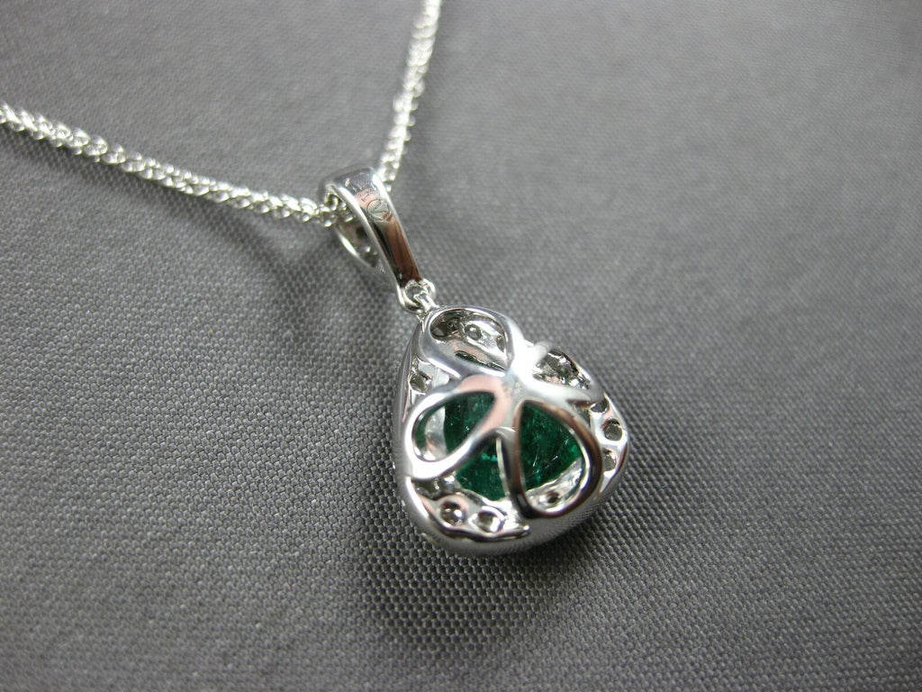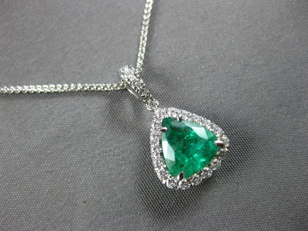 1.58CT DIAMOND & AAA EMERALD 14K WHITE GOLD 3D TRILLION & ROUND FLOATING PENDANT