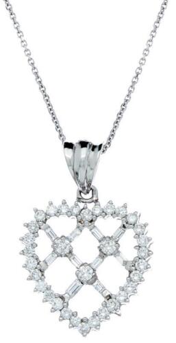 18KT WHITE GOLD LOVE FLOATING PENDANT. 3D HEART DESIGN. ROUND AND BAGUETTE DIAMONDS ARE G/H COLOR, VSSI CLARITY 1.5 CARATS. COMES ON A 14KT GOLD DIAMOND CUT 16" INCH CHAIN. WRITTEN APPRAISAL AVAILABLE. COMES IN A PRESENTABLE GIFT BOX.