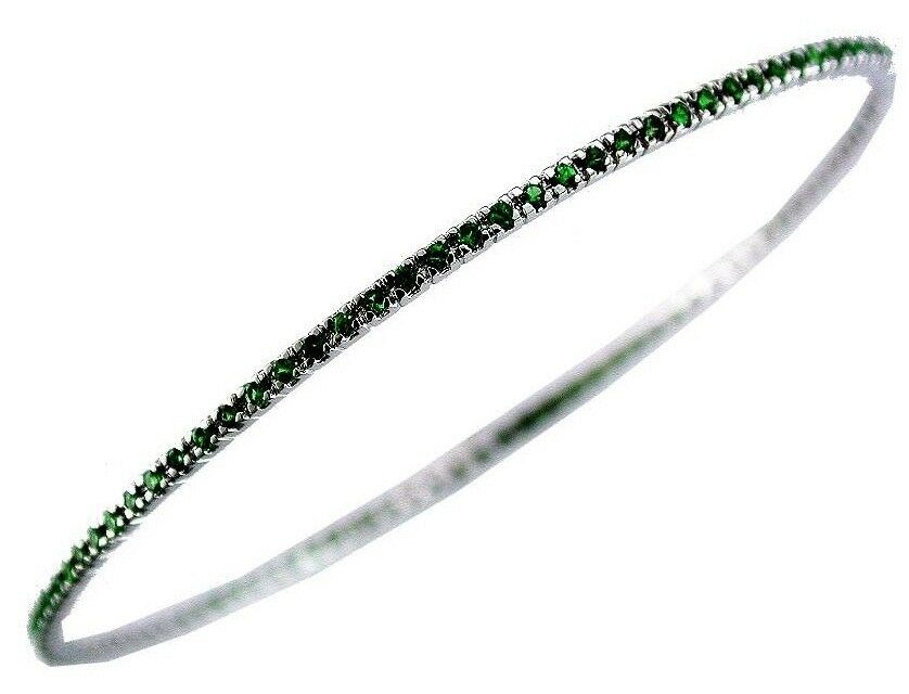 1.60CT AAA TZAVORITE 14KT WHITE GOLD 3D ETERNITY 2mm BANGLE BRACELET