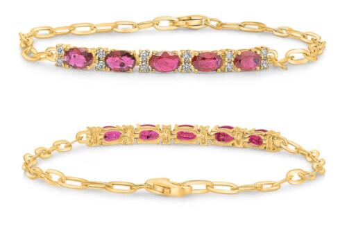 1.60CT DIAMOND & AAA RUBY 14KT YELLOW GOLD 3D OVAL & ROUND CUFF BANGLE BRACELET