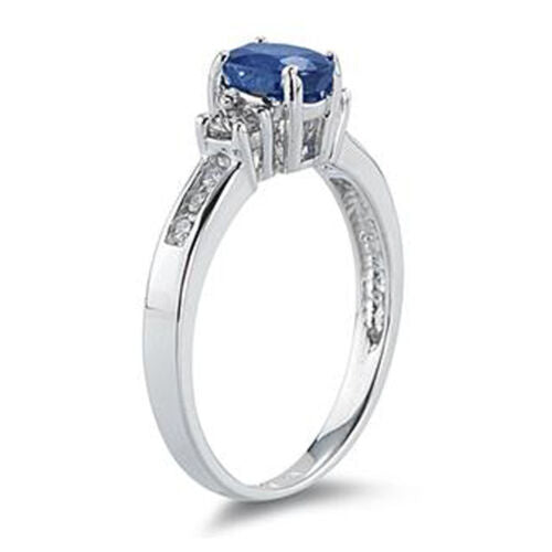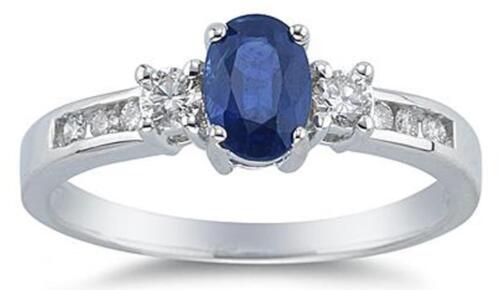 14KT WHITE GOLD LOVE RING. 3D CLASSIC THREE STONE PAST PRESENT FUTURE DESIGN. ROUND DIAMONDS ARE F/G COLOR, VSSI CLARITY .20 CARATS. AAA OVAL SAPPHIRE IS 1.40 CARATS. RING SIZE 7. CAN BE SIZED BY OUR MASTER JEWELER UPON REQUEST. WRITTEN APPRAISAL AVAILABLE. COMES IN A PRESENTABLE GIFT BOX.