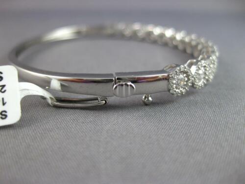 1.64CT DIAMOND 14KT WHITE GOLD MULTI FLOWER SEMI ETERNITY CUFF BANGLE BRACELET