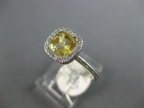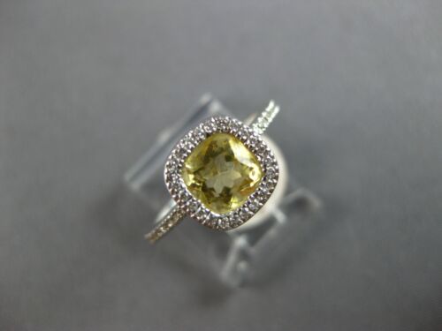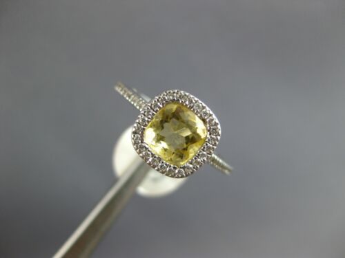14KT WHITE GOLD ENGAGEMENT RING. 3D SQUARE HALO DESIGN. ROUND DIAMONDS ARE F/G COLOR, VSSI CLARITY .52 CARATS. AAA EXTRA FACETED CUSHION CUT YELLOW TOPAZ IS 1.13 CARATS. MEASURES 9mm WIDE. RING SIZE 6.5. CAN BE SIZED BY OUR MASTER JEWELER UPON REQUEST. WRITTEN APPRAISAL AVAILABLE. COMES IN A PRESENTABLE GIFT BOX.