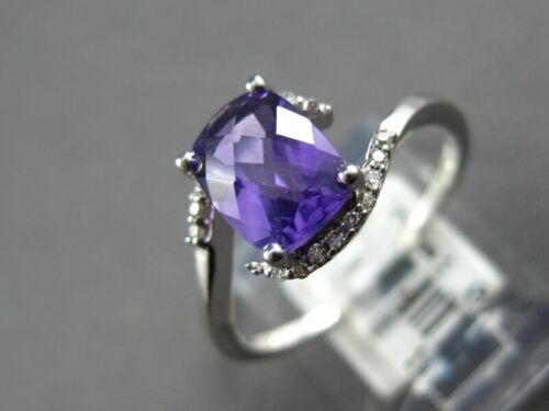 14KT WHITE GOLD LOVE RING. 3D CRISS CROSS DESIGN. ROUND DIAMONDS ARE F/G COLOR, VSSI CLARITY .07 CARATS. AAA EXTRA FACETED CUSHION CUT AMETHYST IS 1.60 CARATS. MEASURES 9.5mm WIDE. RING SIZE 6.75. CAN BE SIZED BY OUR MASTER JEWELER UPON REQUEST. WRITTEN APPRAISAL AVAILABLE. COMES IN A PRESENTABLE GIFT BOX.