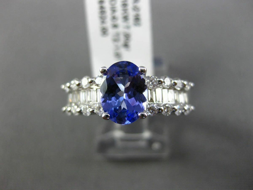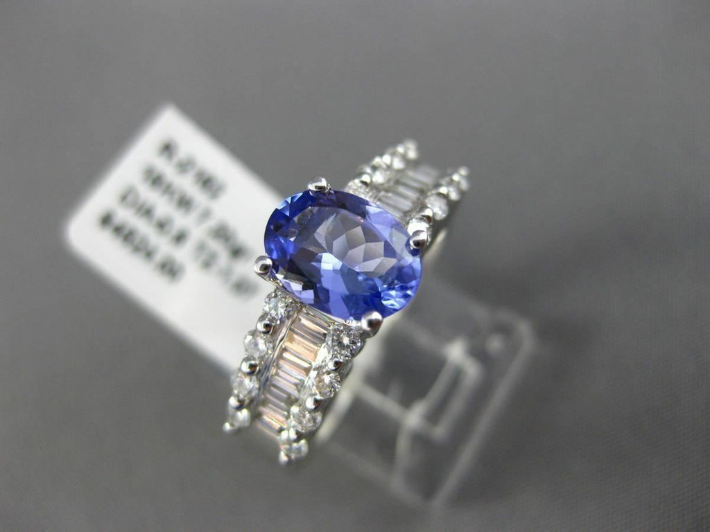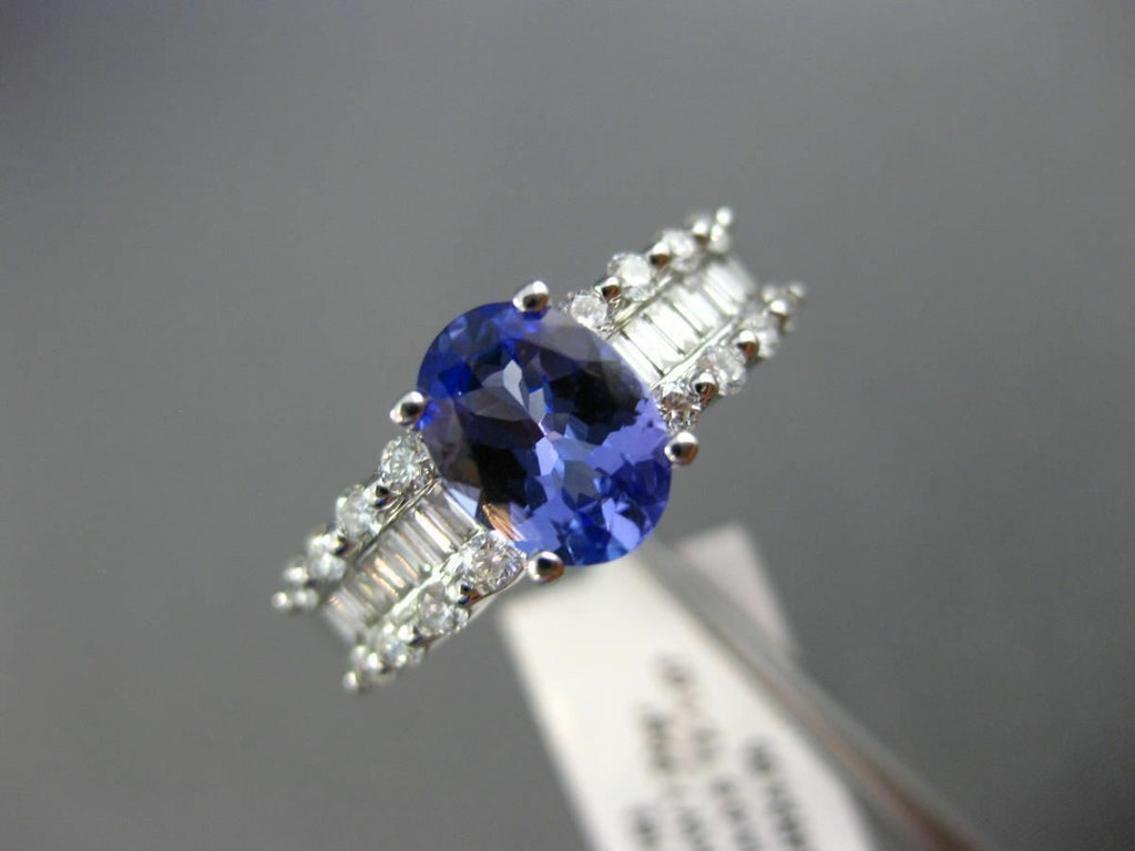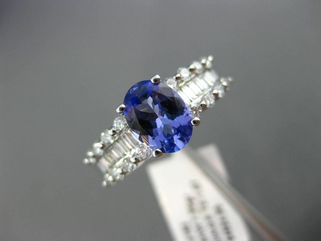 18KT WHITE GOLD ENGAGEMENT RING. 3D OVAL DESIGN. ROUND & BAGUETTE DIAMONDS ARE F/G COLOR, VSSI CLARITY .60 CARATS. AAA TANZANITE IS 1.07 CARATS. MEASURES 8mm WIDE. RING SIZE 6.50. CAN BE SIZED BY OUR MASTER JEWELER UPON REQUEST. WRITTEN APPRAISAL AVAILABLE. COMES IN A PRESENTABLE GIFT BOX.