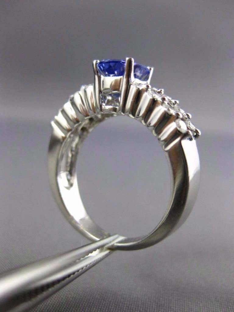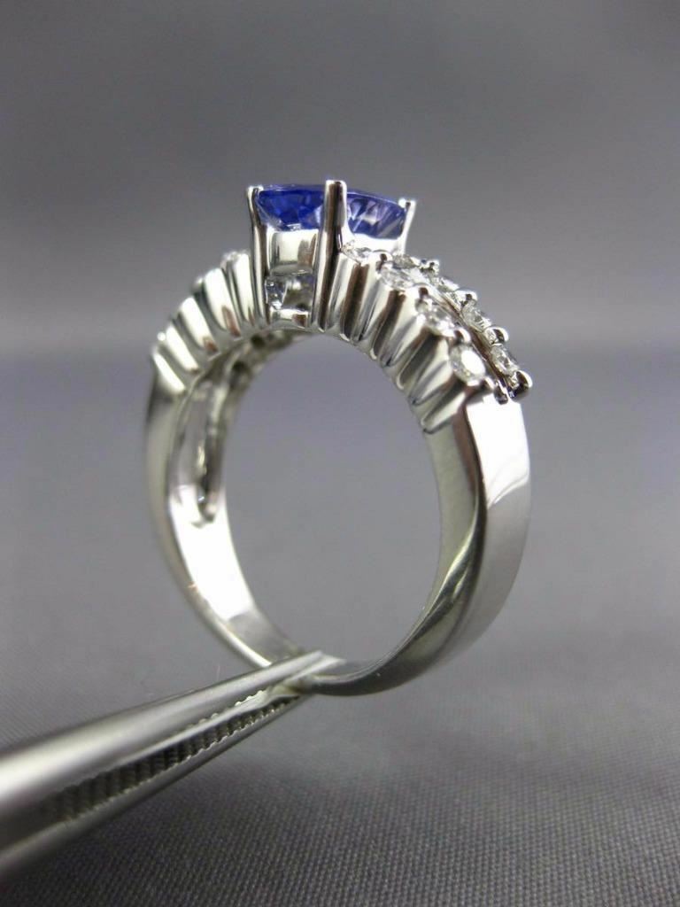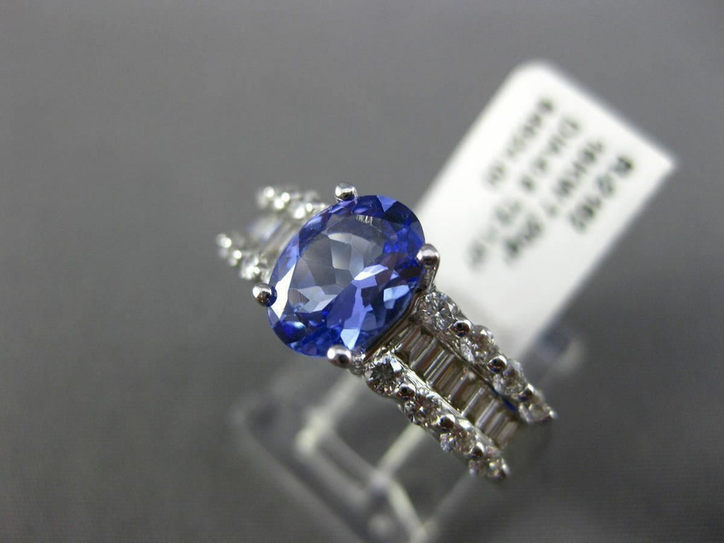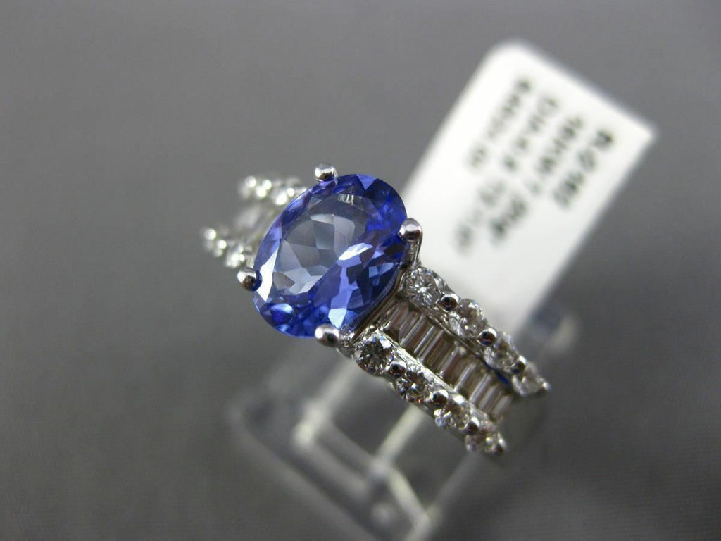 18KT WHITE GOLD ENGAGEMENT RING. 3D OVAL DESIGN. ROUND & BAGUETTE DIAMONDS ARE F/G COLOR, VSSI CLARITY .60 CARATS. AAA TANZANITE IS 1.07 CARATS. MEASURES 8mm WIDE. RING SIZE 6.50. CAN BE SIZED BY OUR MASTER JEWELER UPON REQUEST. WRITTEN APPRAISAL AVAILABLE. COMES IN A PRESENTABLE GIFT BOX.
