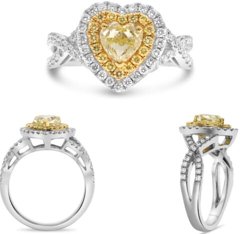 1.67CT WHITE & FANCY YELLOW DIAMOND 18KT TWO TONE GOLD HEART SHAPE & ROUND RING