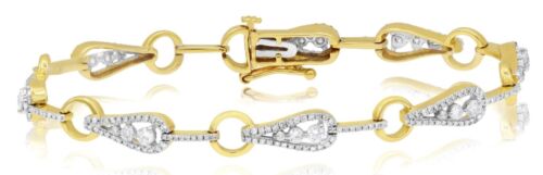 1.68CT DIAMOND 14KT YELLOW GOLD 3D ROUND TEAR DROP BY THE YARD TENNIS BRACELET