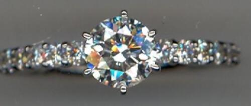 14KT WHITE GOLD ENGAGEMENT RING. 3D SEMI ETERNITY SHARED PRONG DESIGN. ROUND DIAMONDS ARE F/G COLOR, VSSI CLARITY. CENTER DIAMOND IS .94 CARATS. SIDE DIAMONDS ARE .75 CARATS. RING SIZE 7. CAN BE SIZED BY OUR MASTER JEWELER UPON REQUEST. WRITTEN APPRAISAL AVAILABLE. COMES IN A PRESENTABLE GIFT BOX.