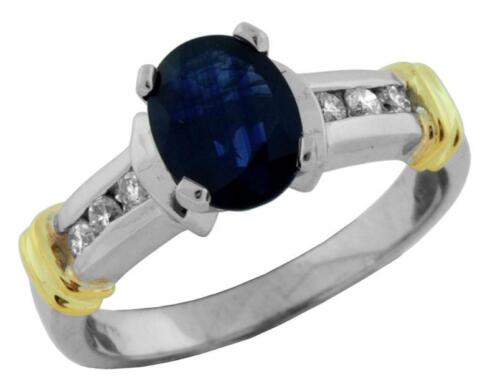 14KT WHITE AND YELLOW GOLD ENGAGEMENT RING. 3D CLASSIC DESIGN. ROUND DIAMONDS ARE F/G COLOR, VSSI CLARITY .16 CARATS. AAA OVAL SAPPHIRE IS 1.55 CARATS. RING SIZE 7. CAN BE SIZED BY OUR MASTER JEWELER UPON REQUEST.