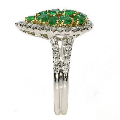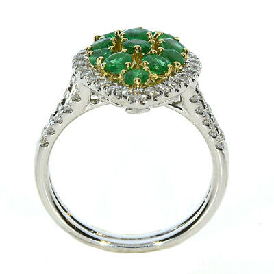 1.72CT DIAMOND & AAA EMERALD 18KT 2 TONE GOLD ROUND CLUSTER PEAR SHAPE FUN RING