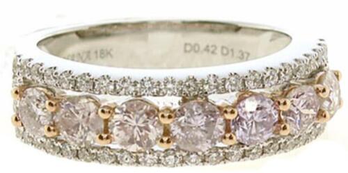 18KT WHITE AND ROSE GOLD ANNIVERSARY RING. 3D CLASSIC SEMI ETERNITY DESIGN. WHITE DIAMONDS ARE F/G COLOR, VSSI CLARITY .42 CARATS. PINK DIAMONDS ARE 1.31 CARATS. RING SIZE 7. CAN BE SIZED BY OUR MASTER JEWELER UPON REQUEST. WRITTEN APPRAISAL AVAILABLE. COMES IN A PRESENTABLE GIFT BOX.