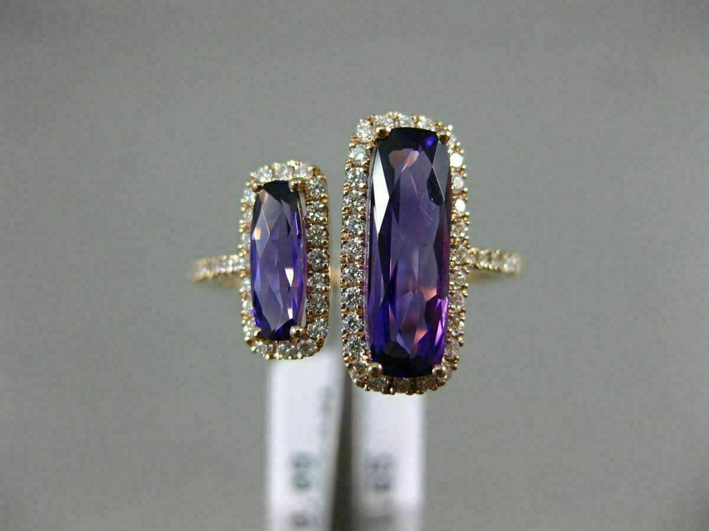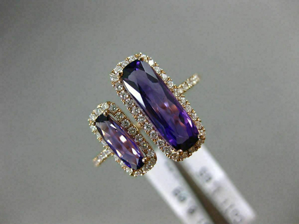 14KT ROSE GOLD FUN RING. 3D RECTANGULAR DOUBLE HALO DESIGN. DIAMONDS ARE F/G COLOR, VSSI CLARITY .09 CARATS. AAA EXTRA FACET AMETHYST IS 1.65 CARATS. MEASURES 14MM WIDE. RING SIZE 7.50. CAN BE SIZED BY OUR MASTER JEWLER UPON REQUEST. WRITTEN APPRAISAL AVAILABLE. COMES IN A PRESENTABLE GIFT BOX.