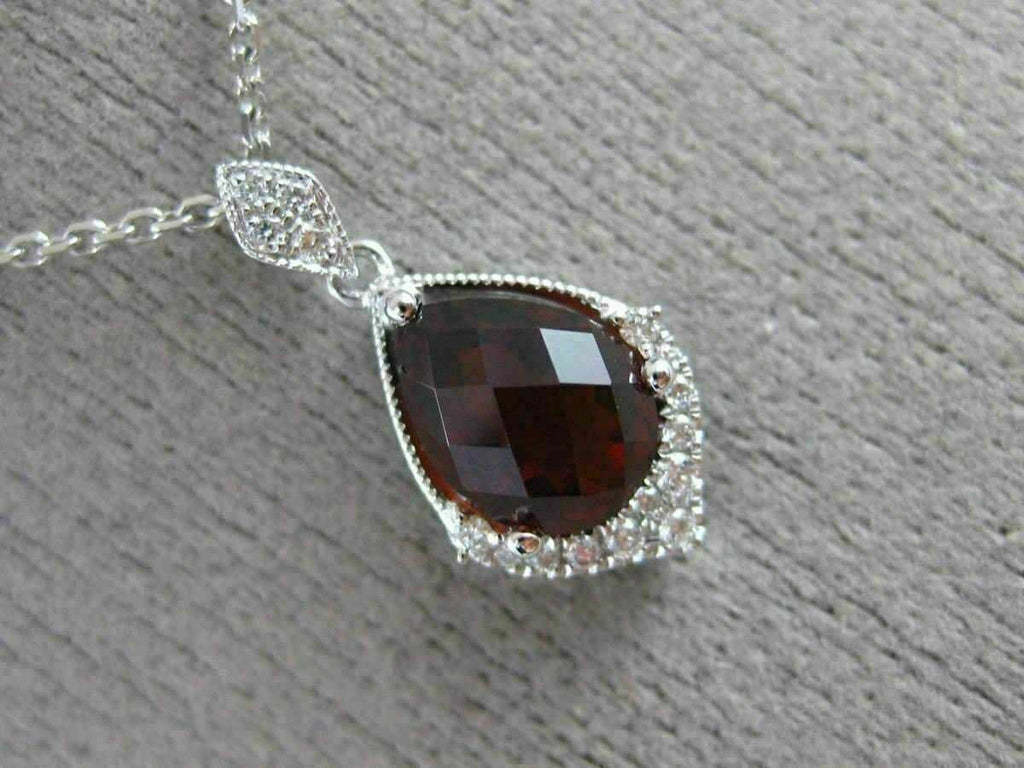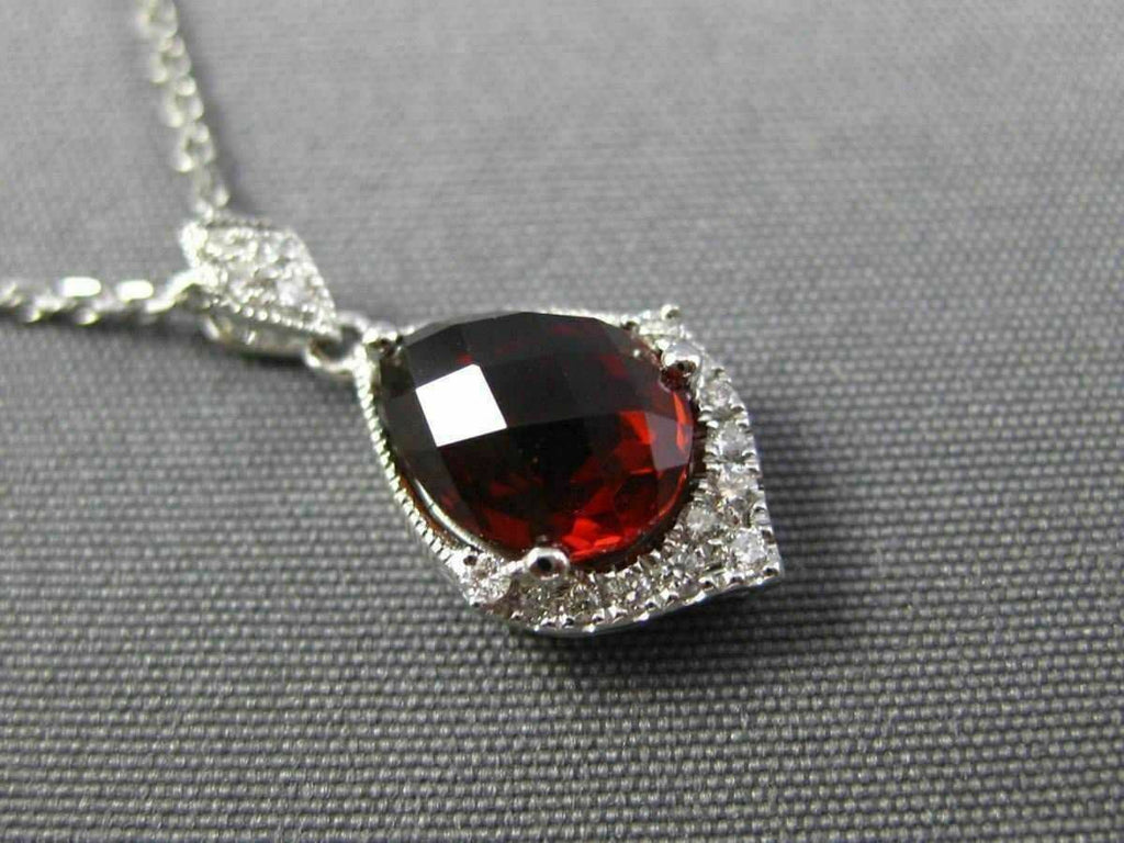 1.74CT DIAMOND & AAA GARNET 14K WHITE GOLD TEAR DROP FILIGREE MILGRAIN PENDANT