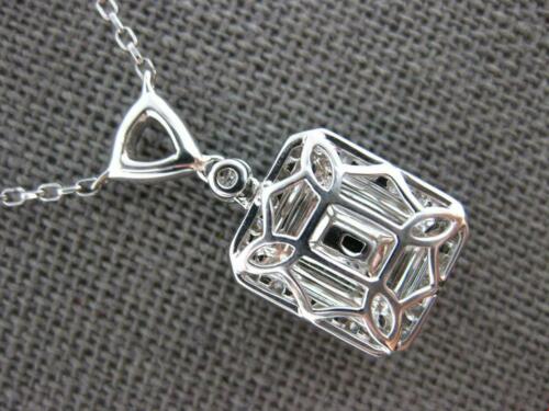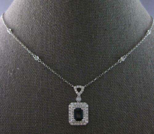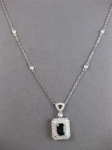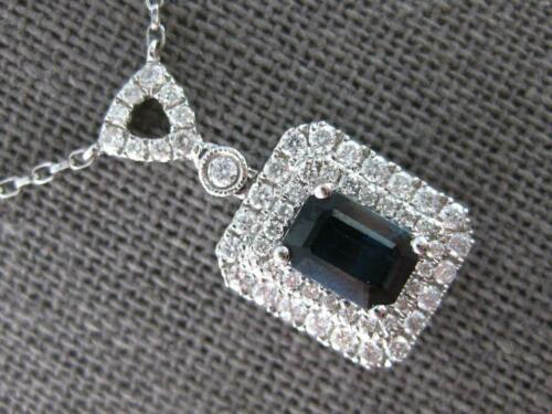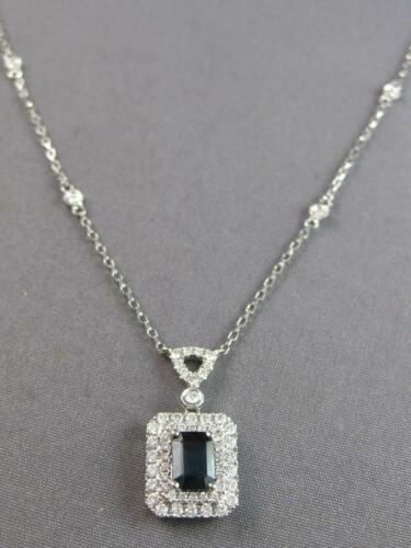 14KT WHITE GOLD LOVE NECKLACE. 3D DOUBLE HALO SQUARE OCTAGON BY THE YARD DESIGN. ROUND DIAMONDS ARE F/G COLOR, VSSI CLARITY .62 CARATS. AAA EMERALD CUT SAPPHIRE IS 1.12 CARATS. MEASURES 22mm X 11.5mm. COMES ON A 14KT GOLD DIAMOND CUT 18" INCH CHAIN. WRITTEN APPRAISAL AVAILABLE. COMES IN A PRESENTABLE GIFT BOX.
