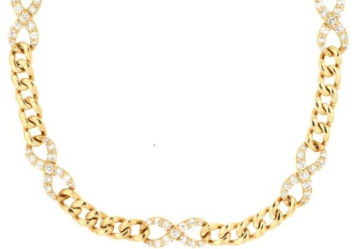 14KT YELLOW GOLD TENNIS NECKLACE. 3D INFINITY BY THE YARD CUBAN DESIGN. ROUND DIAMONDS ARE F/G COLOR, VSSI CLARITY 1.75 CARATS. 17" INCHES LONG. WRITTEN APPRAISAL AVAILABLE. COMES IN A PRESENTABLE GIFT BOX.