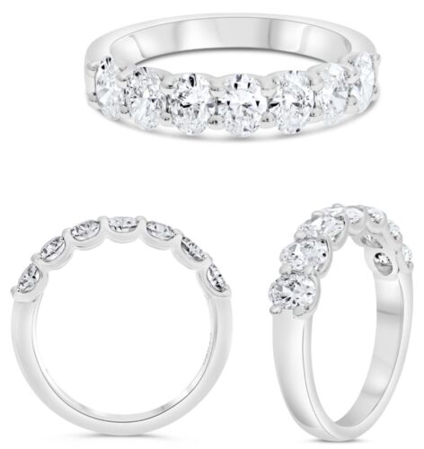 PLATINUM WEDDING ANNIVERSARY RING. 3D CLASSIC SEVEN STONE LUCIDA DESIGN. OVAL DIAMONDS ARE F/G COLOR, VS CLARITY 1.75 CARATS. RING SIZE 6.5. CAN BE SIZED BY OUR MASTER JEWELER UPON REQUEST. WRITTEN APPRAISAL AVAILABLE. COMES IN A PRESENTABLE GIFT BOX.