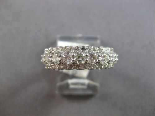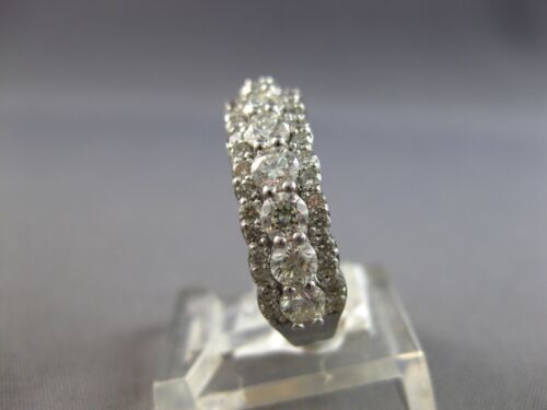 14KT WHITE GOLD WEDDING ANNIVERSARY RING. 3D CLASSIC THREE ROW DESIGN. ROUND DIAMONDS ARE F/G COLOR, VSSI CLARITY 1.77 CARATS. MEASURES 6mm WIDE. RING SIZE 6.75. CAN BE SIZED BY OUR MASTER JEWELER UPON REQUEST. WRITTEN APPRAISAL AVAILABLE. COMES IN A PRESENTABLE GIFT BOX.