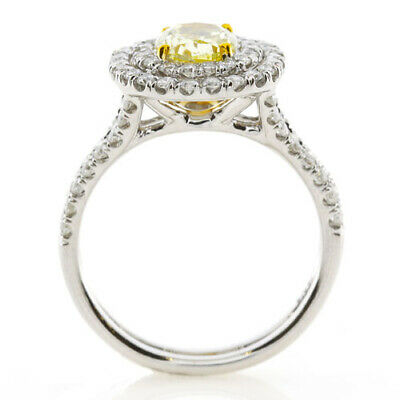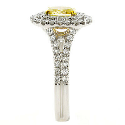 1.77CT WHITE & FANCY YELLOW DIAMOND 18KT 2 TONE GOLD DOUBLE HALO ENGAGEMENT RING