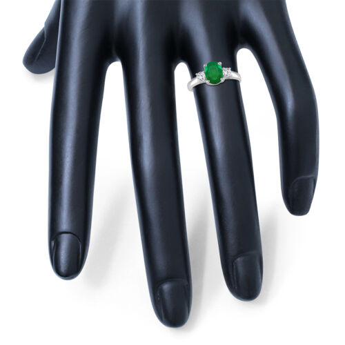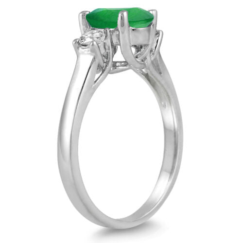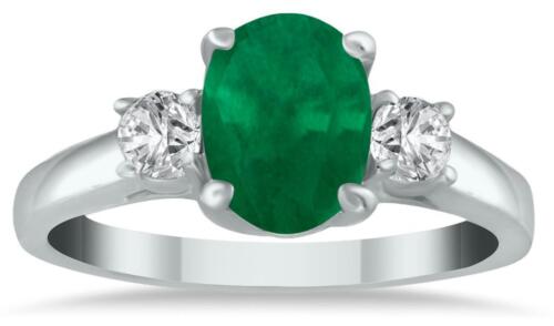 1.80CT DIAMOND & AAA EMERALD 14K WHITE GOLD OVAL & ROUND 3 STONE ENGAGEMENT RING