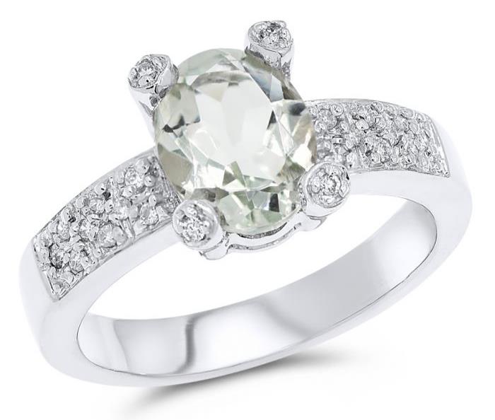1.80CT DIAMOND & AAA GREEN AMETHYST 18KT WHITE GOLD 3D OVAL & ROUND ETOILE RING