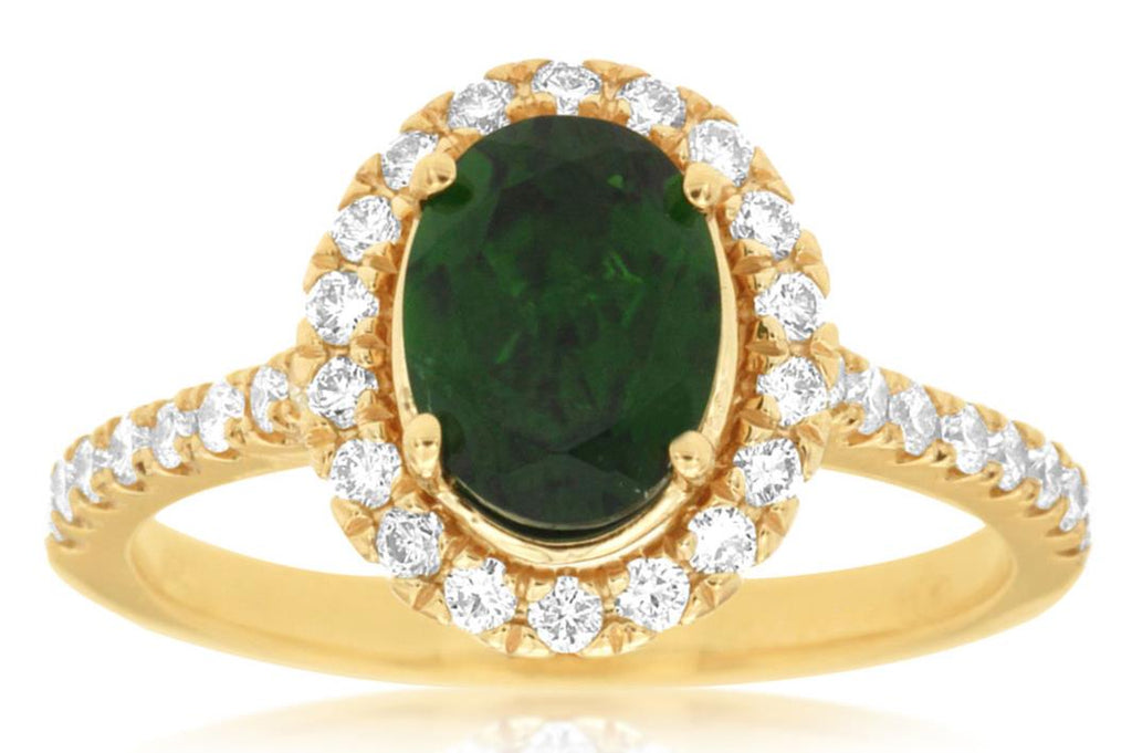 1.80CT DIAMOND & AAA GREEN GARNET 14KT YELLOW GOLD OVAL & ROUND ENGAGEMENT RING