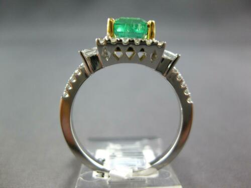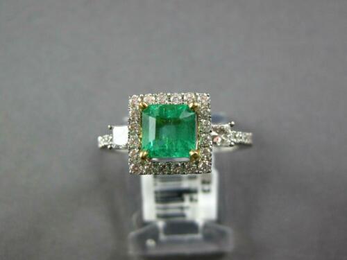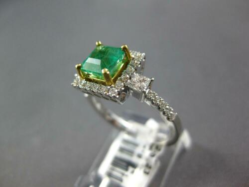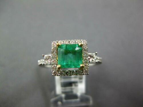 18KT WHITE AND YELLOW GOLD ENGAGEMENT RING. 3D SQUARE HALO DESIGN. PRINCESS CUT AND ROUND DIAMONDS ARE F/G COLOR, VSSI CLARITY .55 CARATS. AAA PRINCESS CUT EMERALD IS 1.26 CARATS. MEASURES 9mm WIDE. RING SIZE 6.5. CAN BE SIZED BY OUR MASTER JEWELER UPON REQUEST. WRITTEN APPRAISAL AVAILABLE. COMES IN A PRESENTABLE GIFT BOX.