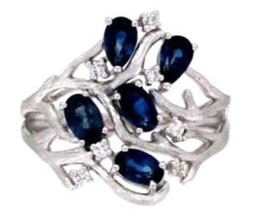 14KT WHITE GOLD FUN RING. 3D CLASSIC MULTI BRANCH DESIGN. ROUND DIAMONDS ARE F/G COLOR, VSSI CLARITY .09 CARATS. AAA OVAL AND PEAR SHAPE SAPPHIRES ARE 1.73 CARATS. RING SIZE 7. CAN BE SIZED BY OUR MASTER JEWELER UPON REQUEST. WRITTEN APPRAISAL AVAILABLE. COMES IN A PRESENTABLE GIFT BOX.