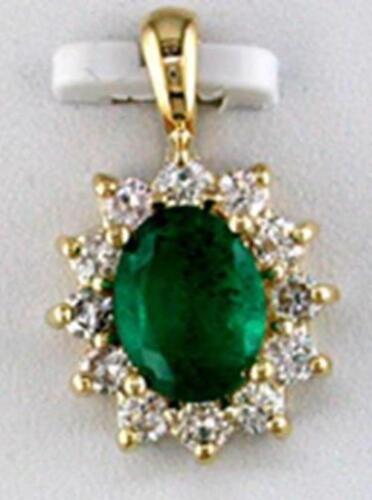 14KT YELLOW GOLD FLOATING PENDANT. 3D CLASSIC FLOWER DESIGN. ROUND DIAMONDS ARE F/G COLOR, VSSI CLARITY .63 CARATS. AAA OVAL EMERALD IS 1.20 CARATS. COMES ON A 14KT GOLD DIAMOND CUT 16" INCH CHAIN. WRITTEN APPRAISAL AVAILABLE. COMES IN A PRESENTABLE GIFT BOX.