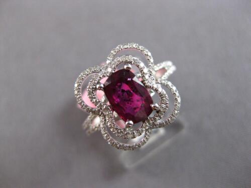 1.83CT DIAMOND & AAA RUBY 18KT WHITE GOLD OVAL & ROUND 4 LEAF CLOVER FLOWER RING