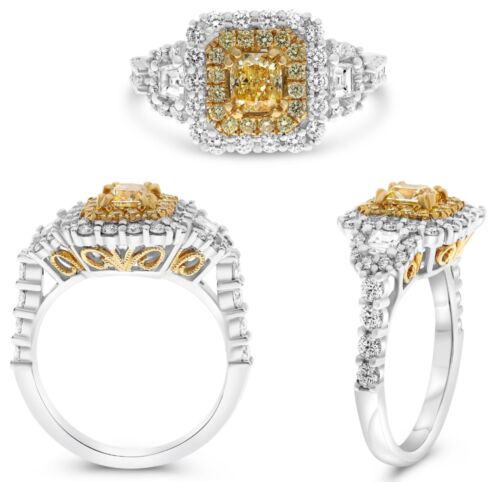 1.84CT WHITE & FANCY YELLOW DIAMOND 18KT TWO TONE GOLD 3D ROUND & TRAPEZOID RING