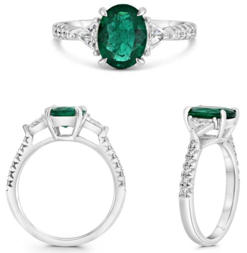 1.86CT DIAMOND & AAA EMERALD PLATINUM 3D ROUND TRILLION & OVAL ENGAGEMENT RING