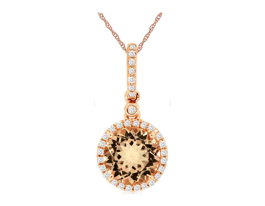 1.87CT DIAMOND & AAA MORGANITE 14K ROSE GOLD CLASSIC ROUND HALO FLOATING PENDANT