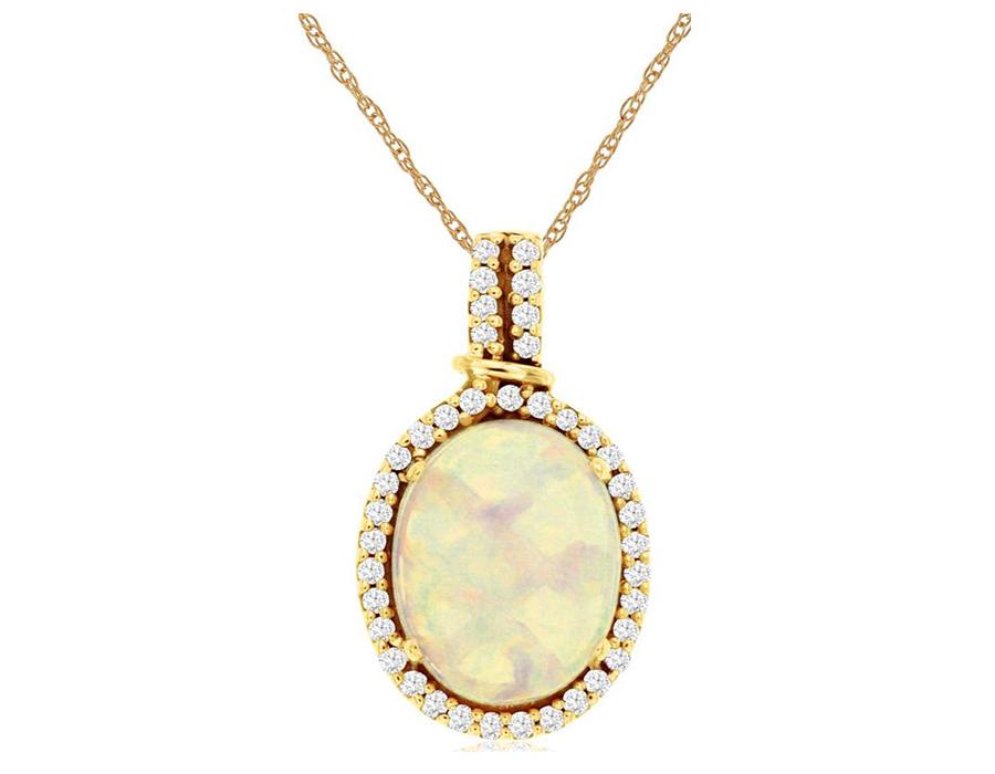 1.87CT DIAMOND & AAA OPAL 14K YELLOW GOLD OVAL & ROUND CLASSIC HALO LOVE PENDANT