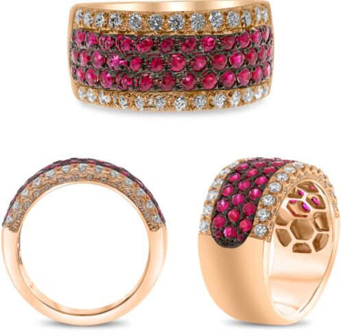 1.89CT DIAMOND & AAA RUBY 14KT ROSE GOLD 3D ROUND WEDDING BAND ENGAGEMENT RING