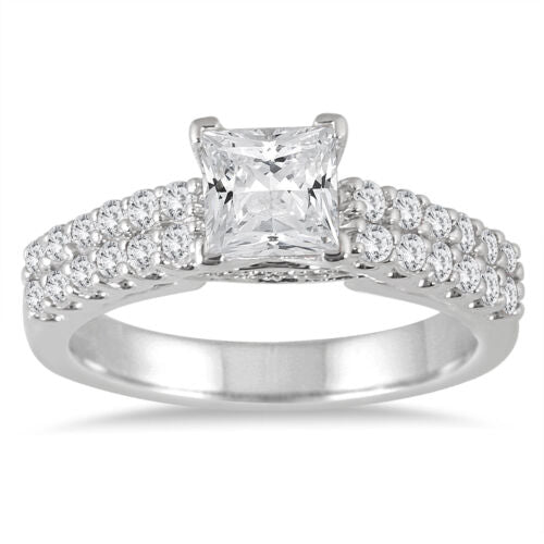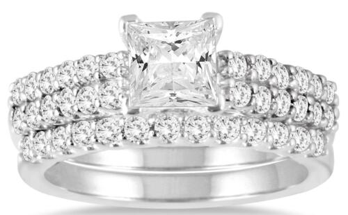 1.8CT DIAMOND 14KT WHITE GOLD 3D ROUND & PRINCESS ENGAGEMENT WEDDING RING SET