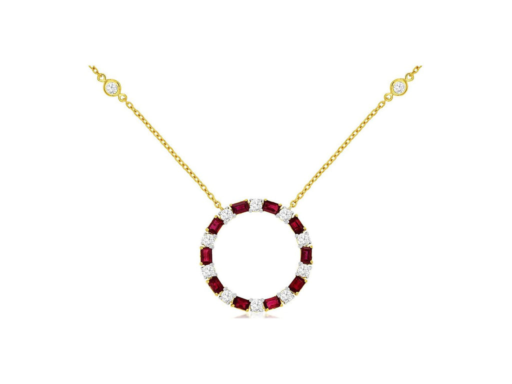 1.8CT DIAMOND & AAA RUBY 14KT YELLOW GOLD 3D CIRCLE OF LIFE BY THE YARD NECKLACE