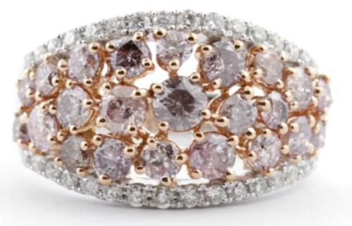 18KT WHITE AND ROSE GOLD WEDDING ANNIVERSARY RING. 3D CLUSTER GRADUATING DESIGN. WHITE DIAMONDS ARE F/G COLOR, VSSI CLARITY .32 CARATS. PINK DIAMONDS ARE 1.58 CARATS. RING SIZE 7. CAN BE SIZED BY OUR MASTER JEWELER UPON REQUEST. WRITTEN APPRAISAL AVAILABLE. COMES IN A PRESENTABLE GIFT BOX.