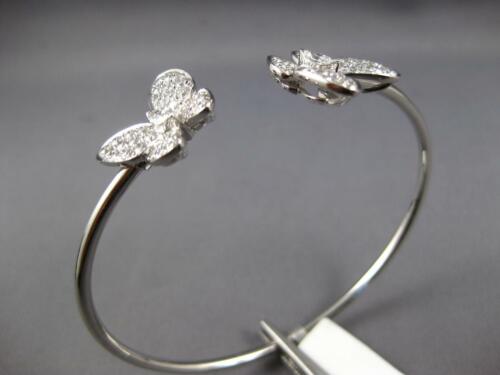 1.95CT DIAMOND 18KT WHITE GOLD 3D DOUBLE BUTTERFLY FLEXIBLE LOVE BANGLE BRACELET