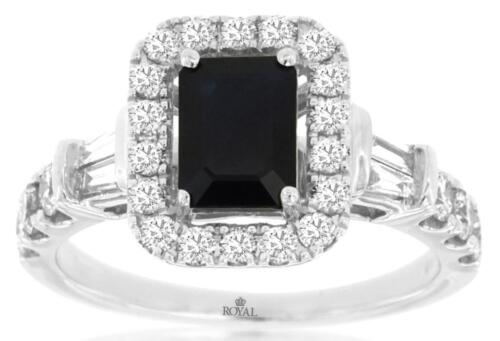 1.97CT DIAMOND & AAA SAPPHIRE 14K WHITE GOLD EMERALD CUT & ROUND ENGAGEMENT RING