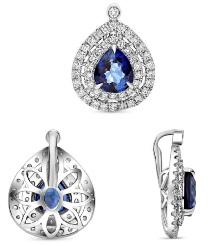 1.98CT DIAMOND & AAA SAPPHIRE PLATINUM 3D PEAR SHAPE & ROUND DOUBLE HALO PENDANT
