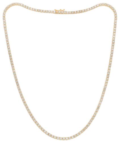 14KT YELLOW GOLD TENNIS LOVE NECKLACE. 3D CLASSIC FOUR PRONG ETERNITY DESIGN. ROUND DIAMONDS ARE G/H COLOR, VSSI CLARITY 10.0 CARATS. 17" INCHES LONG. WRITTEN APPRAISAL AVAILABLE. COMES IN A PRESENTABLE GIFT BOX.