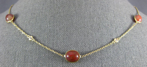 10.34CT DIAMOND & FIRE OPAL 14KT YELLOW GOLD ROUND & OVAL BY THE YARD NECKLACE